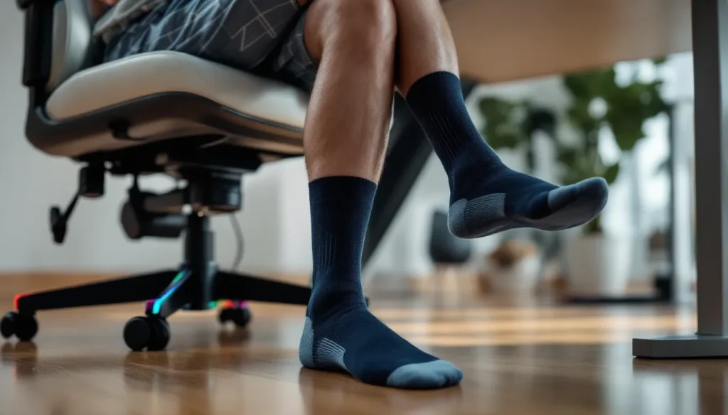 The average competitive gamer sits for 4-8 hours daily, often in less-than-ideal postures. That sedentary position restricts blood flow to the lower legs and feet, leading to numbness, swelling, and the pins-and-needles sensation that makes you shift constantly in your chair. Regular socks don’t combat this. Gaming socks do.