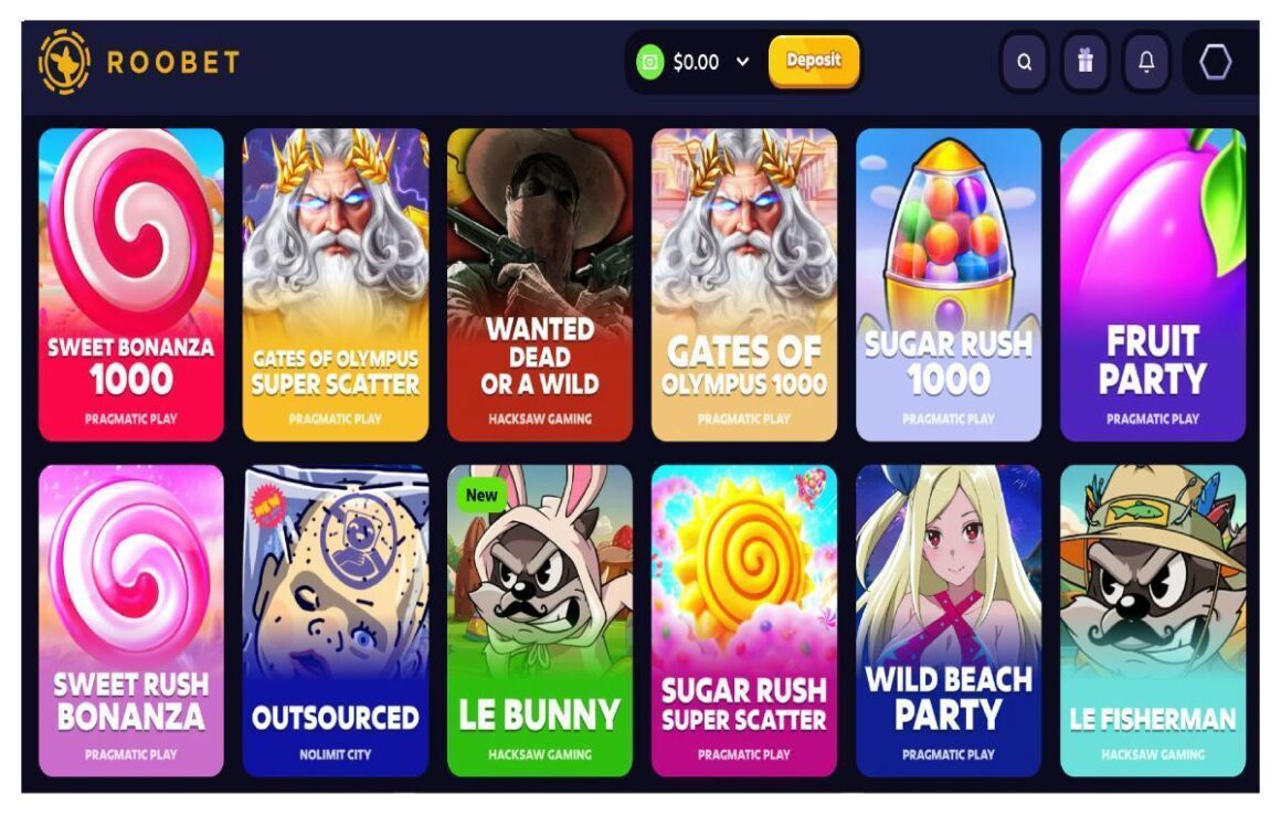 An image of Roobet’s slot games page